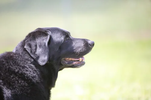 In this Sample Photo, the subject is a Black Lab against Grass and light green shrubbery.