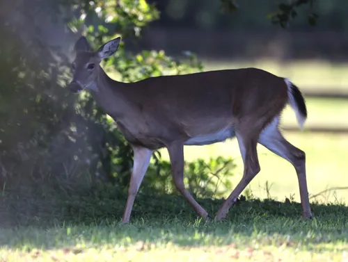 Deer are skittish by nature since they are shot at by hunters so often. This photo was taken near my home which is in an animal sanctuary - no hunting (except with imaging equipment of course!)